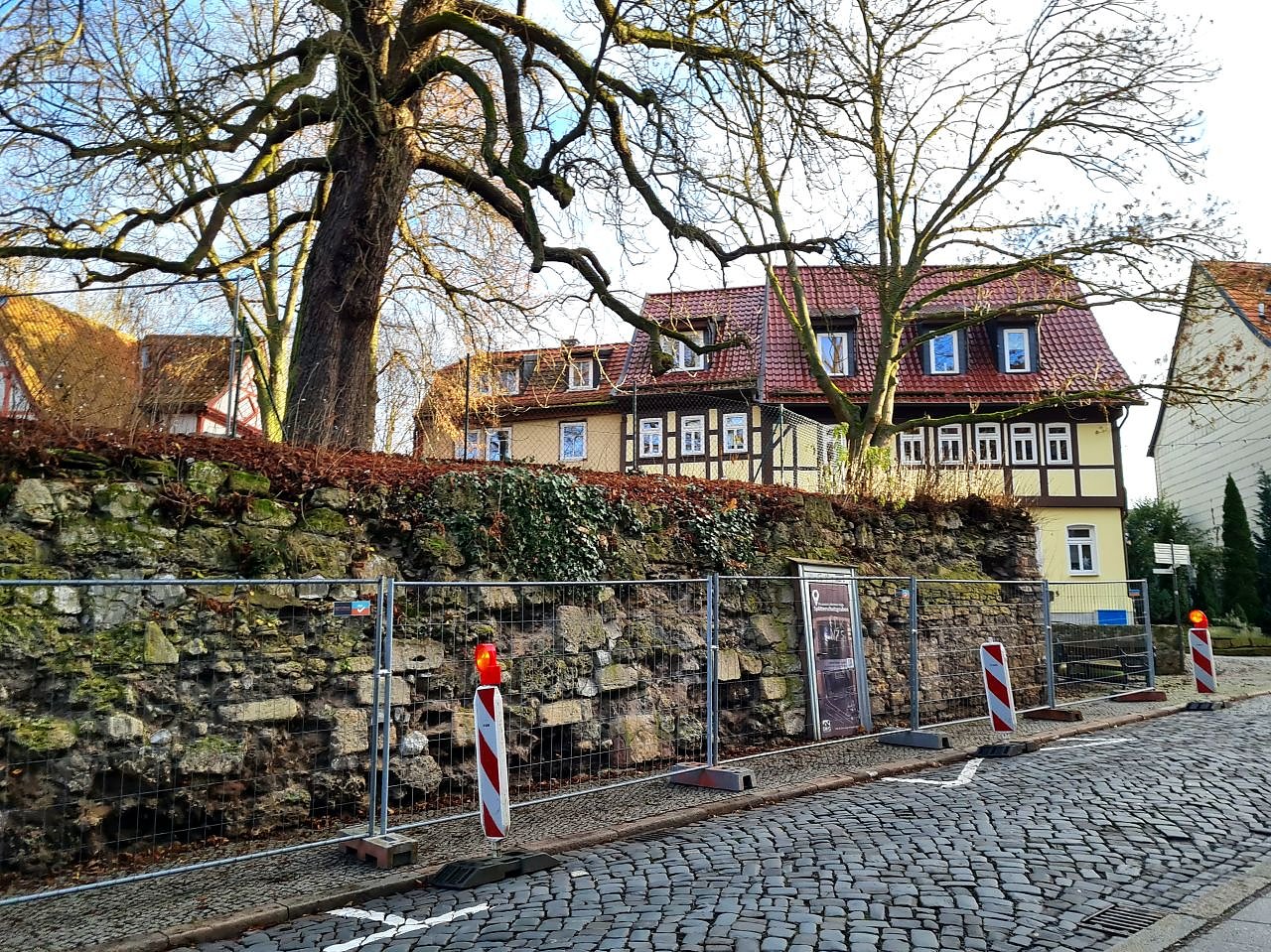 Die Städtische Wohnungsbaugesellschaft (SWG) wird zu Jahresbeginn die Stützmauer des Spendekirchhofs in der Nordhäuser Altstadt mit einem Netzvorhang sichern. Zur Vorbereitung der Maßnahme wurden bereits große Teile der Mauer mit Bauzäunen abgesperrt und ein Parkverbot eingerichtet...