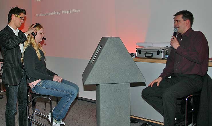 Die drei besten Spielgruppen erhalten als Auszeichnung Gutscheine in Höhe von 100,-€ bzw. 50€ für Fondanteile der DekaBank. Die ersten 24 Spielgruppen erwartet heute ein spannender Nachmittag in Form einer Quiz-Show ähnlich Wer wird Millionär, bei der die Spieler bis zu 300,-€ für ihr Team gewinnen können.