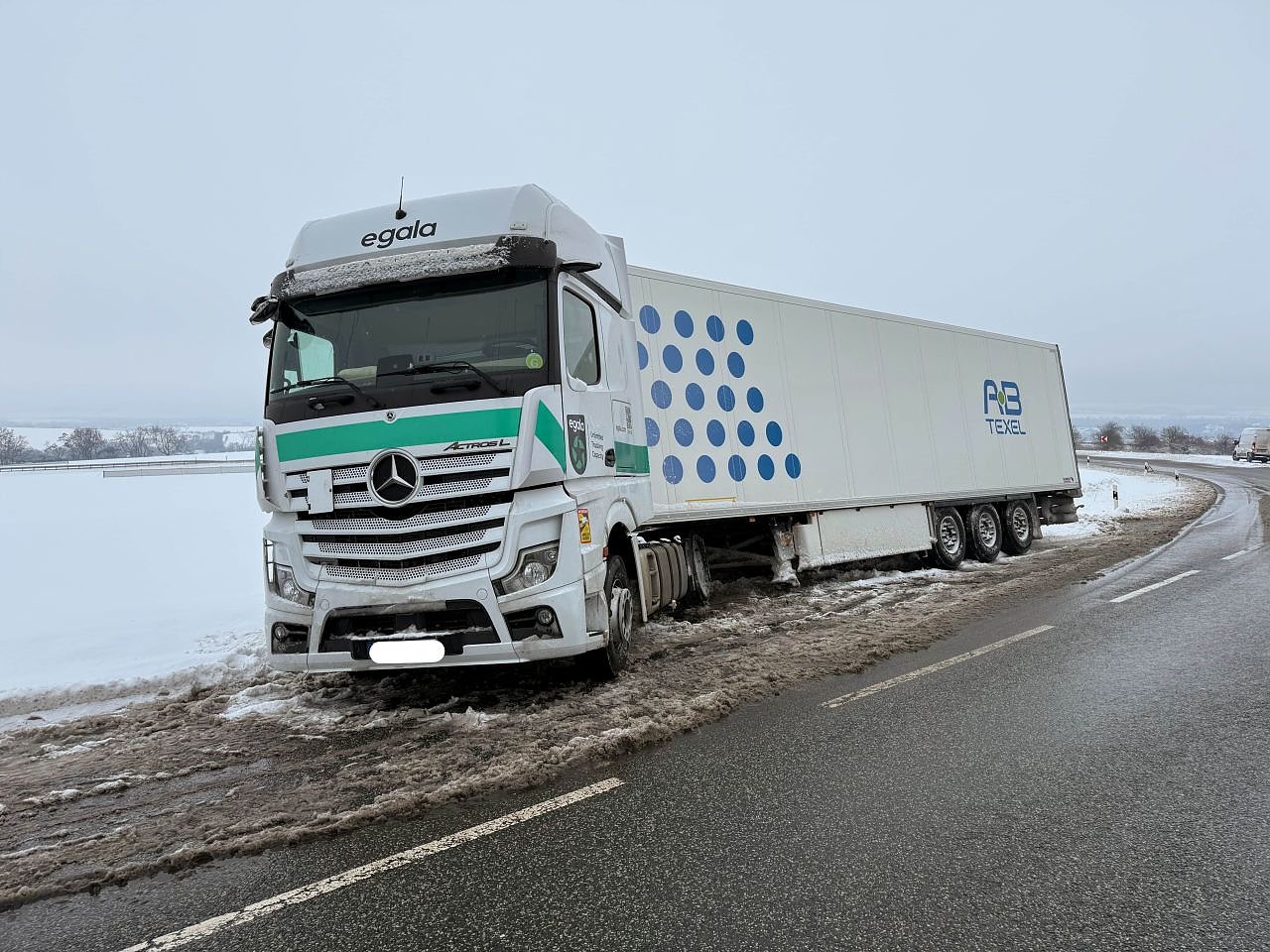 Dieser Lkw ist auf der B4 zwischen Nordhausen und Sondershausen von der Straße gerutscht. (Foto: Slivio Dietzel)