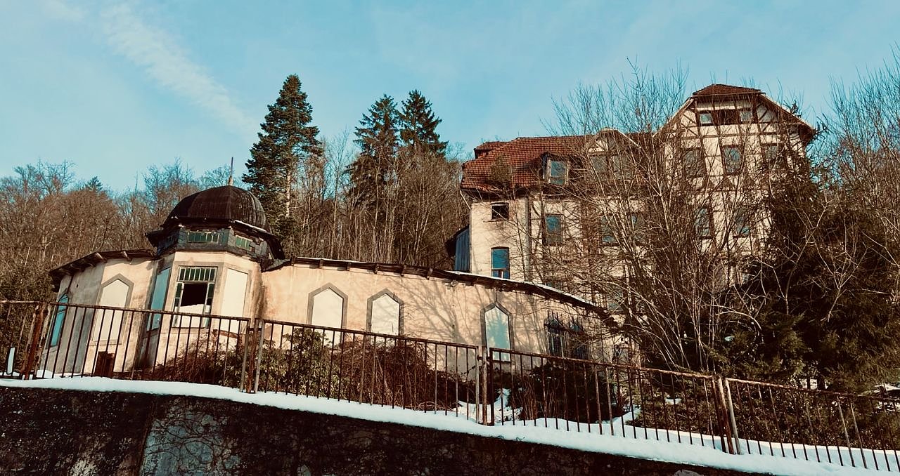 Beim Spaziergang durch Sülzhayn kann man auch die Rückseite des alten Sanatoriums sehen - und ins Innere blicken, Teile der Fassade sind vollständig verschwunden (Foto: ggl)