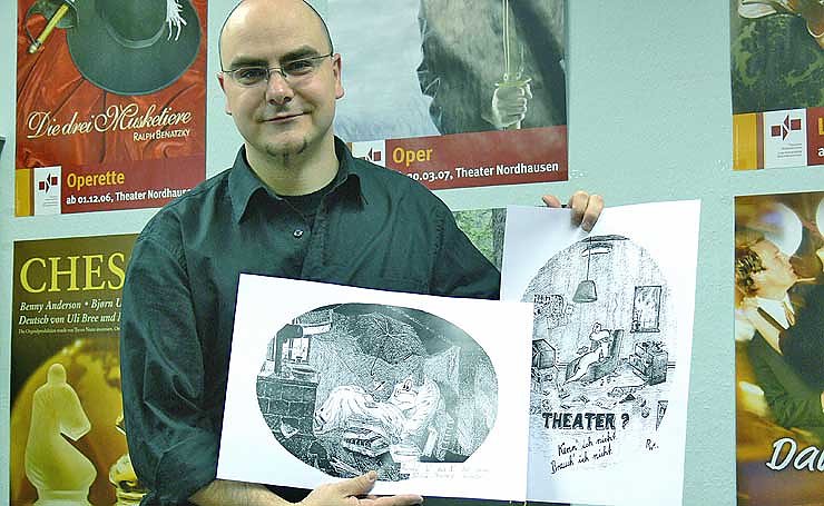 Nordhausen (nnz). Normalerweise müsste Ronald Winter jetzt in einem Architekturbüro sitzen. Doch den 33jährigen hat es nach dem Studium zum Theater getrieben. Die Theaterleidenschaft hat er von seiner Mutter, die ihn als Kind in verschiedene Aufführungen mitnahm. Jetzt gibt es von Winter die erste Ausstellung.
