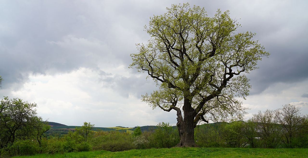 Die große Krone von Flehmüllers Eiche bei Krimderode ist weithin sichtbar. Seit mindestens 600 Jahren steckt der Baum mit seinen Wurzeln in der Südharzer Erde. Nun soll die knorrige Eiche als einer von 100 Nationalerbe-Bäume Deutschlands ausgezeichnet werden...