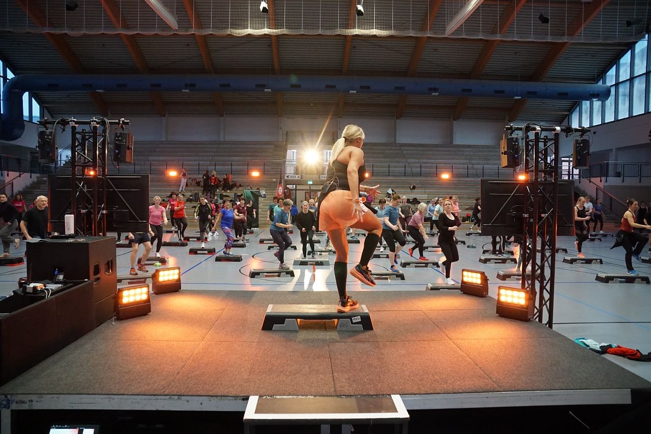 Zum festen Programmpunkt gehört Ramona Nahrstedt, die die Sportlerinnen und Sportler in knapp einer halben Stunde Step-Aerobic ins Schwitzen brachte und für die weiteren Kurse ordentlich aufwärmte. Anschließend folgte ein Workout-Mix und später AROHA sowie Athletiktraining, bei denen Ausdauer und Kraft im Mittelpunkt standen.