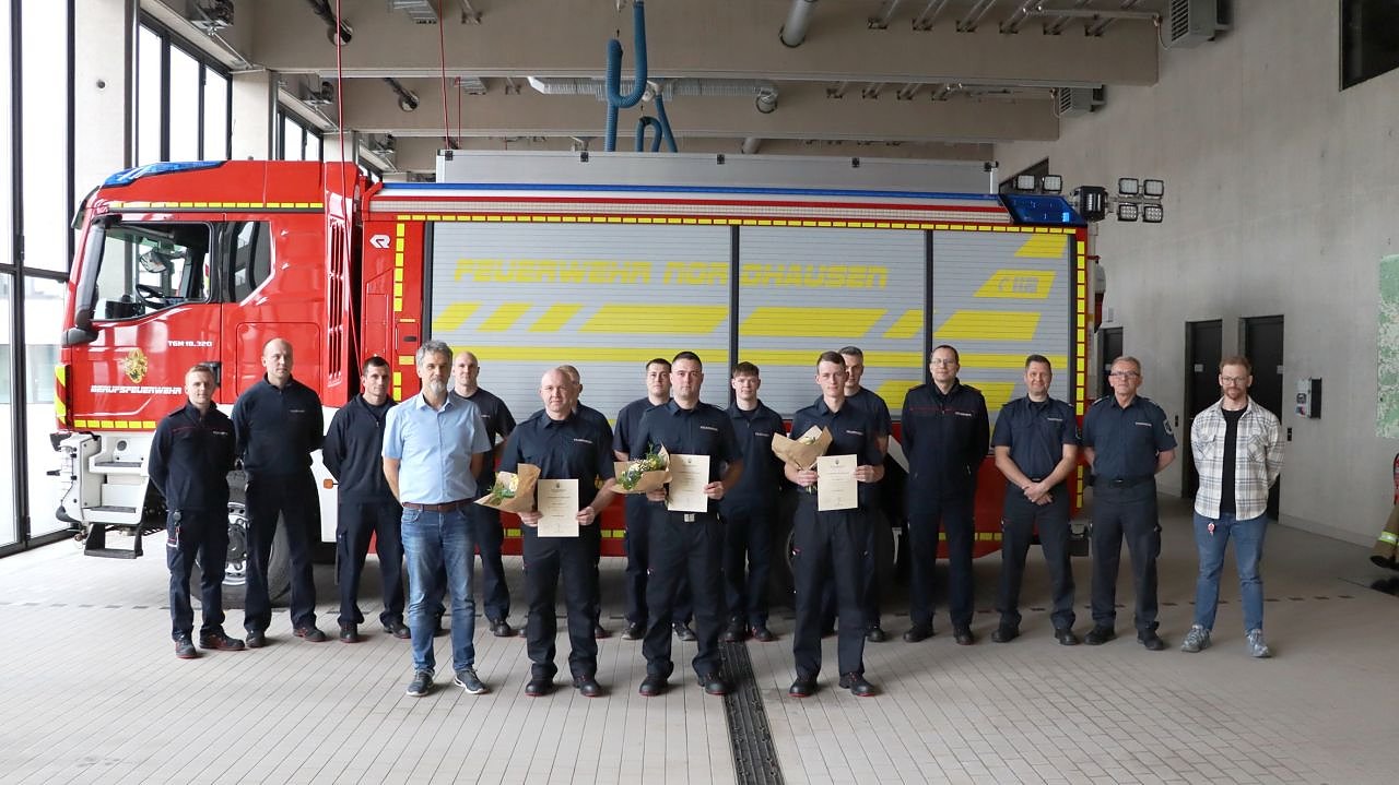 Ab dem 01. April erfolgt die Grundausbildung in Jena. Der Oberbürgermeister gratulierte den Nachwuchskräften, gemeinsam mit den Kollegen der Berufsfeuerwehr und wünschte ihnen eine erfolgreiche Zukunft bei der Nordhäuser Berufsfeuerwehr.