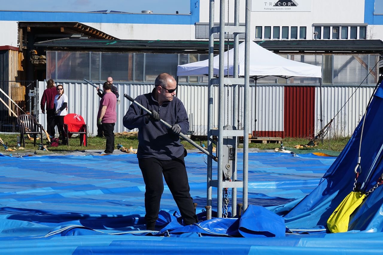 Das Zelt wird hochgehebelt. (Foto: ssc)
