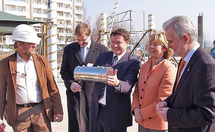 In seinem Grußwort dankte Thüringens Wirtschaftsminister Jürgen Reinholz (CDU) den beteiligten Firmen, insbesondere aber der Genossenschaft für ihr Engagement. In Zeiten, da viel von den Folgen der demografischen Entwicklung geredet wird, lasse die WBG praktische Taten folgen. Sie haben zur rechten Zeit, am rechten Ort das Rechte getan, lobte Oberbürgermeisterin Barbara Rinke (SPD) die WBG und verwies dabei auch auf den Mut der Genossenschaft ein solch gewaltiges Projekt anzugehen.
