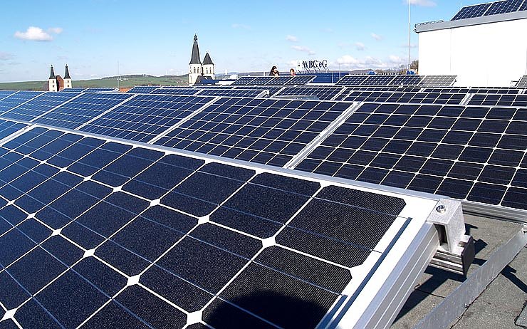 Vor rund einem Jahr gab es die ersten Gespräche für den Aufbau einer Photovoltaikanlage. Eigentlich geplant im Zuge der Sanierung des Hauptstellengebäudes, waren die dortigen Sonnenbedingungen nicht so günstig, wie auf dem höheren Standort des zweitem Sparkassengebäudes. Dort steht die Anlage nun, die auch bei bedecktem Himmel Energie erzeugt. Im Eingangsbereich des Hauptstellengebäudes ist die Einspeisung abzulesen. Partner für die Planung und die Bauausführung wurden in Nordhausen sowie in Sachsen-Anhalt gefunden, die Kollektoren kommen aus einem Thüringer Unternehmen.
