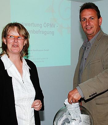 Am vergangenen Mittwoch zog Andreas Wieninger, Vorsitzender des Ausschusses Wirtschaft und Verkehr im Stadtrat gemeinsam mit Inge Klaan, Dezernentin für Wirtschaft und Verkehr, die Gewinner aus dem Teilnehmerkreis der Kundenbefragung. Den Hauptpreis, eine Sonderfahrt mit der Bistrobahn, gewann Antje Büchner aus Nordhausen. Herzlichen Glückwunsch.