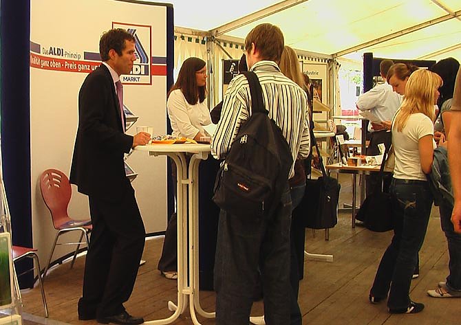 Nordhausen (nnz). Am Nordhäuser Weinberg soll heute Abend richtig gefeiert werden. Doch zuvor konnten sich die Studenten eingehend über ihre künftige Karriere informieren. Die nnz mit einer Stippvisite auf der Firmenkontaktmesse.