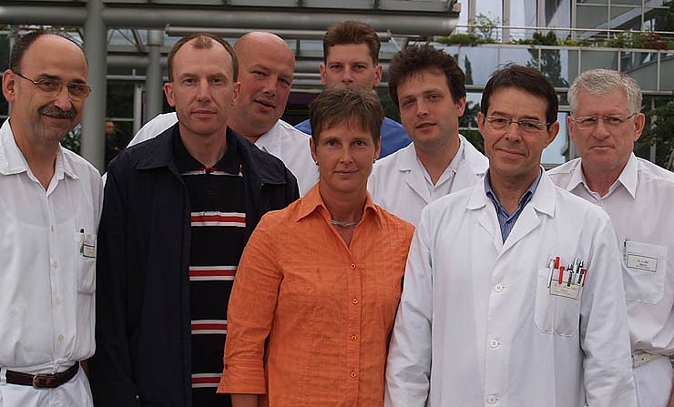 Von links: Prof. Dr. Uwe Klein, Dr. Andreas Wagner, Dr. Norbert Höß, Frau Dr. Christine Knauer, dahinter Guido Hage (stellv. Geschäftsführer), Dr. Ansgar Malich, Prof. Dr. Alois Schmid, Dr. Leonid Diel
