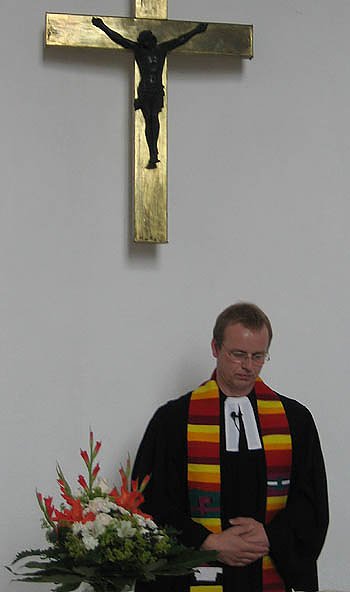 Und so stand das Gemeindefest unter dem erfreulichen Signal, dass der neue Pfarrer Friedemann Büttner den Gottesdienst abgehalten hat und am Nachmittag in den Gesprächen mit den Gemeindemitgliedern die ersten persönlichen Kontakte knüpfen konnte.Der Gemeindekirchenrat hatte den 42jährigen neuen Pfarrer Friedemann Büttner am 5. Mai diesen Jahres nach einem Vorstellungsgottesdienst ausgesucht. "Wir sind allen Pfarrern dankbar, die im Moment die Vertretung in der Gemeinde wahrnehmen, aber wir freuen uns natürlich auch darauf, wenn unser neuer Pfarrer dann im August hier das Amt übernimmt und die Gemeindestruktur wieder stimmt", erklärte Wilfried Jendricke als Vorsitzender des Gemeindekirchenrates.