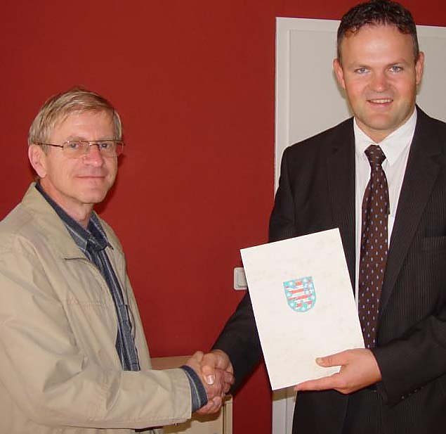 Mit der Übergabe der Ernennungsurkunde durch Rektor Jörg Wagner wurde Ralf Tosse zum Professor auf Lebenszeit an der Nordhäuser Hochschule ernannt. Der gebürtige Rudolfstädter lehrt bereits seit 2005 im Studiengang Technische Informatik an der FHN. Zuvor war er als Akademischer Oberrat an der Technischen Universität Ilmenau tätig, an der er auch promoviert hatte. In Nordhausen hat sich Professor Tosse besonders um den Aufbau des neuen Masterstudiengangs Systems Engineering verdient gemacht, der 2008 seinen Lehrbetrieb aufnehmen wird. Informations- und Kommunikationssysteme sind die Lehr- und Forschungsschwerpunkte des nun langfristig an die Hochschule gebundenen Wissenschaftlers.
