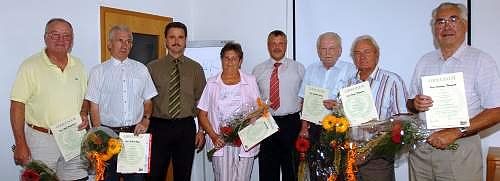 Mehr als 50 Jahre fahren Helmut Meyer, Rolf Engelhardt, Joachim Schulz und Klaus Thelemann schon mit dem Auto. Hartwig Thorwirth hätte bald eine Auszeichnung für 60 Jahre verdient, seit 1949 hat er den Führerschein. Die gibt es jedoch nicht, also muß sich auch der Rekordhalter mit offiziell 50 Jahren begnügen. Erstmals erreichte auch eine Frau diese stolze Zahl, Vera Weiß aus Nordhausen.
