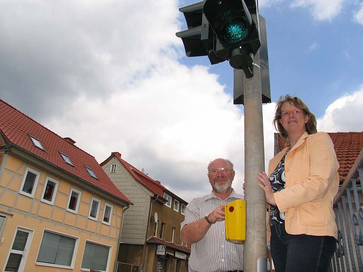 Die neue Fußgängerampel in Salzas Hauptstraße hat jetzt Nordhausens Bau- und Wirtschaftsdezernentin Inge Klaan (CDU) in Betrieb genommen. Die lange Zeit der provisorischen Ampel hat damit eine Ende, sagte sie. Anlass der Neuinstallation sei die Zerstörung der mobilen Ampel durch einen Verkehrsunfall gewesen.