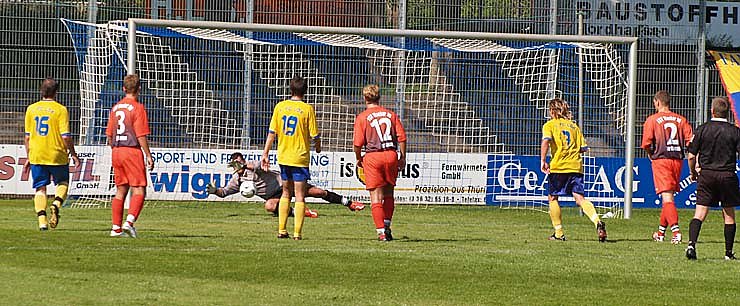 Das erste Tor fiel für die Gastgeber, da waren gerade mal sieben Minuten gespielt. Tino Steinberg zog direkt auf Lars Pohl ab und der konnte sich die Ecke wohl überlegt aussuchen. 1:0 für Nordhausen. Das aber spiegelte nur diese ersten Minuten wider. Die Leipziger waren in der ersten Halbzeit spielerisch, taktisch und körperlich den Nordhäusern überlegen. Bei einem Einschlafversuch der Hintermannschaft am Wackerstrafraum bestrafte der Ex-Nordhäuser Sven Hellmund den Aussetzer knallhart mit dem Anschlusstreffer, da waren 27 Minuten gespielt.