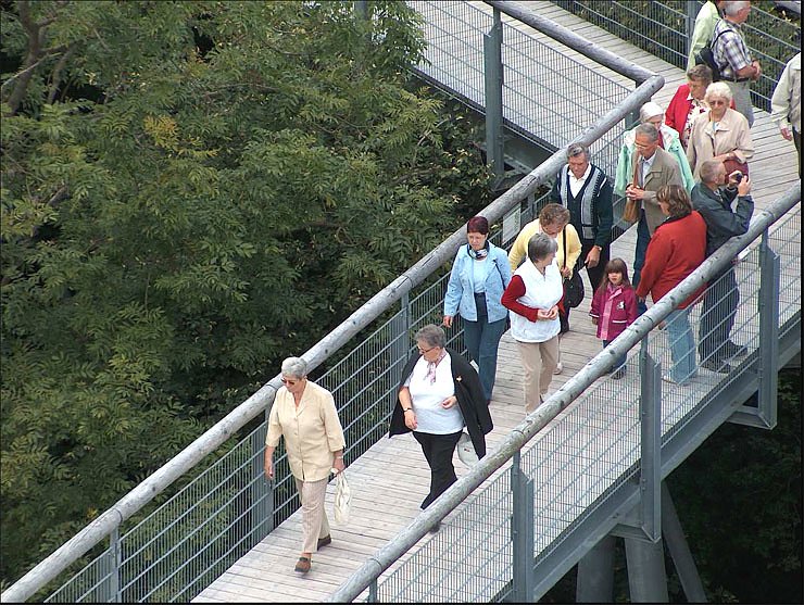 Der erste Bus fuhr zum Baumkronenpfad im Nationalpark Hainich (siehe Foto), während die anderen zwei Busse in Mülverstedt blieben und die Seniorinnen und Senioren das dortige Heimat- und Bauernmuseum besuchten. Der Baumkronenpfad war zwar einigen bekannt aber die exzellenten sachkundigen Führungen fanden alle Teilnehmer sehr informativ.