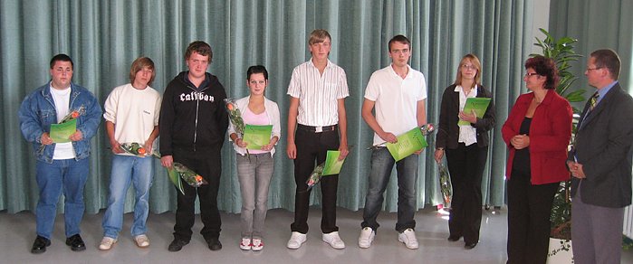 Am 04.09. 2007 erhielten 54 Jugendliche aus dem Kyffhäuserkreis und dem Landkreis Nordhausen beim Firmenausbildungsverbund Nordthüringen e.V. ihre Ausbildungsverträge. In einer feierlichen Veranstaltung an der Fachhochschule Nordhausen erhielten gestern 54 junge Leute im Rahmen des Sonderprogramms Zukunftsinitiative für Lehrstellen 2007 ihre Lehrverträge überreicht. Ab 17.09. 2007 wird die Lehrausbildung für sie in 51 Betrieben unsere Region in 19 verschiedenen Ausbildungsberufen beginnen. So wird unter anderem die Ausbildung zur Verkäuferin, zur Fachkraft im Gastgewerbe, zum Konstruktionsmechaniker oder auch zum Mechatroniker begonnen. Neben Partnern aus unseren Mitgliedsunternehmen waren Vertreter der IHK Erfurt sowie der Agentur für Arbeit anwesend. Herr Prof. Dr. Wagner, Rektor der Fachhochschule und Gastgeber der Veranstaltung, zeigte in seiner Ansprache den jungen Menschen auf, wie wichtig jedwede Qualifikation heute ist und dass es darauf ankommt, gar keine Wissenslücken erst entstehen zu lassen. Der Vorstand des Firmenausbildungsverbundes Nordthüringen e.V., vertreten durch Frau Schumann, begrüßte die neuen Auszubildenden im FAV. In ihrer Rede verdeutlichte Frau Schumann die Erwartungshaltung des Vorstandes und der Mitarbeiter an die neuen Lehrlinge. Die Berufsausbildung ist der Grundstein für die berufliche Perspektive jedes Einzelnen, führte sie aus. Der Vertragsabschluss stellt eine große Chance dar und es wird nun erwartet, dass diese auch von jedem genutzt wird.