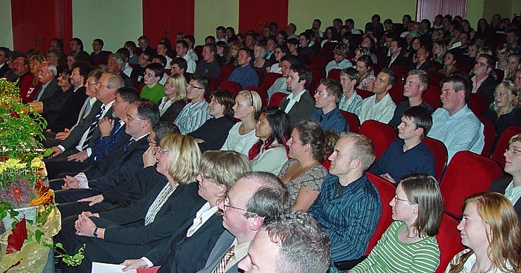 Rektor Jörg Wagner und der stellvertretende Vorsitzende des Wissenschaftlichen Vereins, Lutz Herfurth, nutzten den Anlass und zeichneten die Studentin Christine Zuber als Siegerin des Hochschulvideowettbewerbs aus. Sie hatte mit ihrem Filmbeitrag Spionage auf dem Campus nicht nur das Publikum begeistert, sondern auch die siebenköpfige Jury überzeugt. Somit kann die Nordhäuser Hochschule wenige Tage vor den Feierlichkeiten zu ihrem zehnjährigen Bestehen am 2. Oktober optimistisch in die Zukunft schauen.