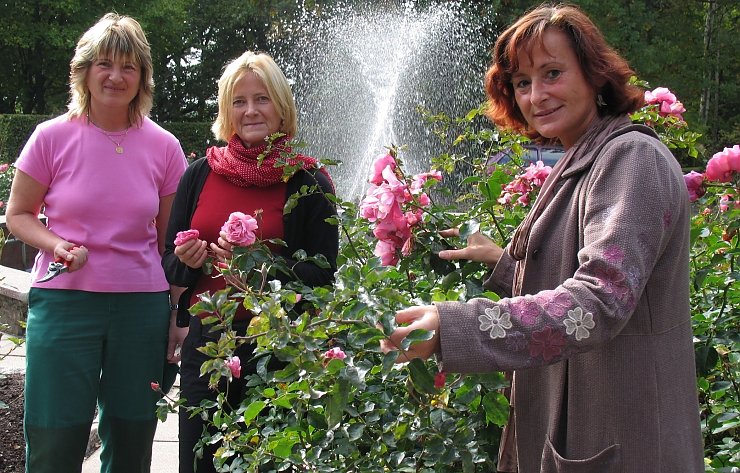 1998/ 1999 wurden, um die Sortenvielfalt zu erhöhen, nochmals einige Beete umgestaltet. Es entstanden Beete mit Rosensorten mit so fantasievollen Namen wie "Duftrausch", " Kontrast" oder "Collette", kombiniert mit einer Vielzahl anderer Sorten ähnlicher Eigenschaften. So duften z. B. alle Rosen auf dem Beet "Duftrausch". Das Beet "Harmonie" zeigt die Rosen mit ihren Begleitpflanzen, den Stauden. Den Rosengarten pflegen die Gärtnerin Marion Zimmermann und zwei weitere Mitarbeiterinnen des Bereiches Grünanlagenpflege. Und das könne schon mal bis Weihnachten sein, denn auf Grund der Witterung sei ein dreimaliger Blütenflor keine Seltenheit mehr, sagte Kerstin Windisch abschließend.
