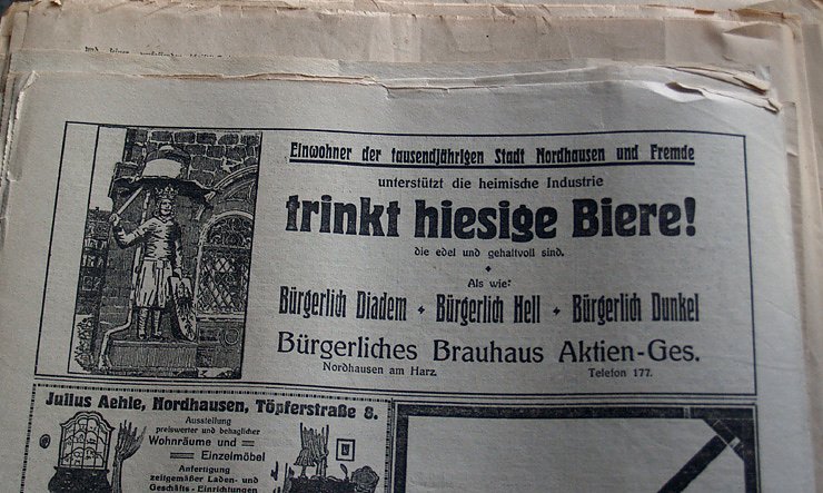 Schon 1927 setzten Nordhäuser Bierbrauer auf Identität. Eine Anzeige aus der Festzeitung zu 1000 Jahre Nordhausen