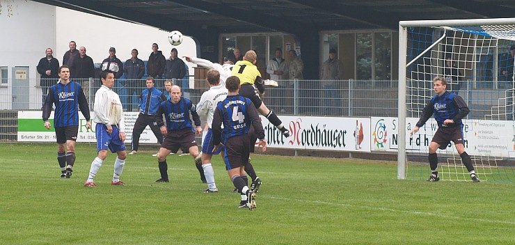 Nur zwei Minuten später setzt sich Hauke Lattmann auf der linken Seite durch, flankt bilderbuchhaft in den gegnerischen Strafraum. Dort wartet wiederum Pohl, der per Kopf auf 2:0 erhöht. Zuvor hatten die 300 Zuschauer eine durchaus gleichwertige Gästemannschaft gesehen, die hart zur Sache ging und den Nordhäuser wenig Platz zur Entfaltung ließ.