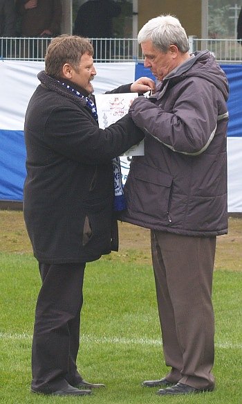 In der Halbzeitpause wurde Wacker-Urgestein Günter Beck nachträglich zu seinem 70. Geburtstag gratuliert. Wacker-Präsident Detlef Zeitler überreichte dem Jubilar die Ehrenmedaille des Thüringer Fußballverbandes in Silber. Die nnz schließt sich den Glückwünschen natürlich an.