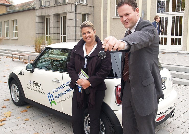 Am heutigen Donnerstag übergab Steffi Fritze, Inhaberin des BMW-Autohauses Fritze, der Nordhäuser Hochschule einen nagelneuen MINI ONE. Der neue FHN-Flitzer steht Studierenden und Mitarbeitern der Fachhochschule Nordhausen nun für sechs Monate unentgeltlich zur Verfügung.