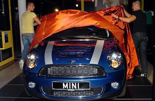 Autor: wfRot eingepackt warten die neuen Minis auf die Aufnahme in die große Mini-Familie. Zahlreiche Freunde des kleinen Autos haben sich zur Feier des Auspackens im Autohaus Fritze versammelt. Sie sind alle neugierig auf den Mini Clubman, wie der Neue heißt.
