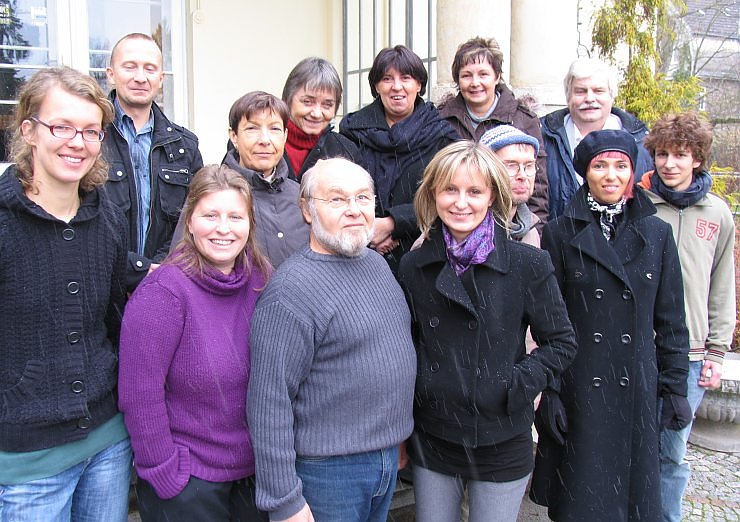Zum Bild: Die Workshopleiter in der 1. Reihe v.l.n.r.: Antje Iwan (Jugendkunstschule), Sylvie Zzani (Charleville-Mézières), Lothar Rechtaczek ((Jugendkunstschule), Marysia Szelag (Ostrów-Wielkopolski), Martin Jahn (Jugendkunstschule), Agnieszka Liasiak (Ostrów-Wielkopolski).