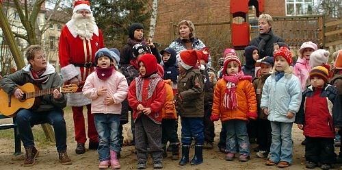 Eltern und Großeltern sollten mitsingen. Der Weihnachtsmann schaute auch vorbei und verteilte kleine Geschenke. Da der Markt so viel Spaß gemacht hat und die Resonanz der Familien riesig war, soll der erste nicht der letzte Markt gewesen sein.