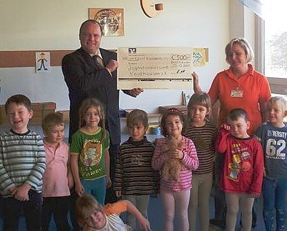Ein Scheck (500 Euro) wurde dem Jugendsozialwerk Nordhausen quasi als verspätetes "Geburtstagsgeschenk" im Kindergarten Regenbogen zum 15. Geburtstag überreicht. Mit dem Geld kann der Kindergarten Spielgeräte für die Kleinsten kaufen, was gerade kurz vor Weihnachten für die Erzieherinnen und Kinder eine große Überraschung war. Was genau gekauft werden soll, dass wollte Leiterin Bettina Janiszewski aber noch nicht verraten.