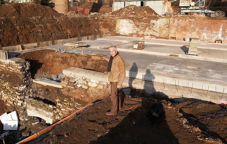 Ein Gebäude der ehemaligen Brauerei am Taschenberg ist noch zu sehen. Das wird auch stehenbleiben, meint Investor Axel Heck bei einem Baustellengespräch mit der nnz. Dahinter, fast verborgen, ist in den zurückliegenden Monaten die Grundplatte für das neue Gebäude der Brauerei gegossen worden. Wenn alle Verträge mit den entsprechenden Firmen unter Dach und Fach sind, dann soll mit den Stahlbauarbeiten für die eigentliche Produktionshalle begonnen werden. Heck rechnet mit einem Fertigstellungstermin im Sommer dieses Jahres.