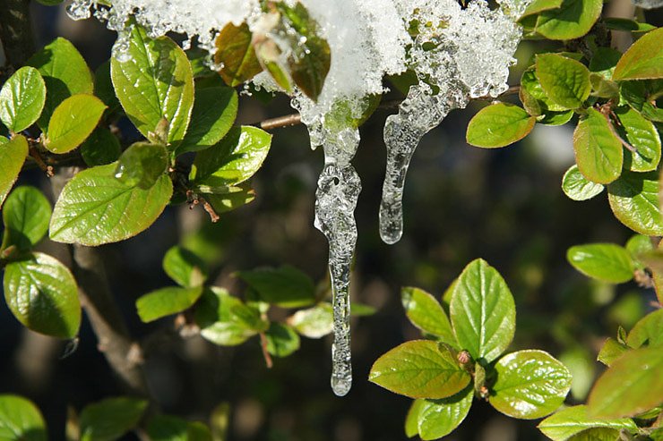 Günther Stanislowsky hat diesen Jahreszeitenmoment heute festgehalten. Der Winter in Form eines Eiszapfens schmilzt dahin, das Grün des Frühlings gewinnt die Vorhand.