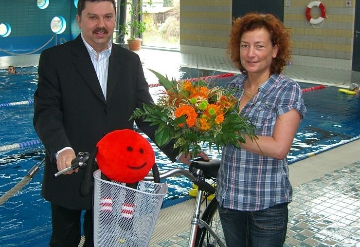 Wenn Frau Schack demnächst ins Nordhäuser Badehaus fährt, dann kann sie das mit einem neuen Drahtesel tun. Den hat die Frau just im Badehaus gewonnen...