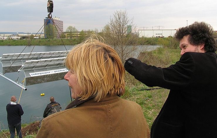 Autor: nnzBeim Stapellauf des solarpower-ponton I mit dabei: Oberbürgermeisterin Barbara Rinke und Prof. Viktor Wesselak