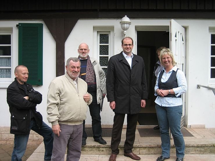 Vor dem Kinderheim v.l.n.r.: Ortsteilkoordinator Joachimi, Koordinator Ordnung und Sauberkeit, Wolfram Thiele, Ortsbürgermeister Herbert Becker, Bürgermeister Jendricke und Heimleiterin Fehrmann