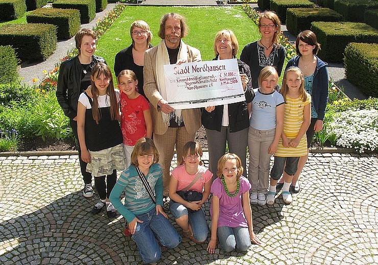 Den jährlichen Zuwendungsbescheid der Stadtverwaltung über 31.000 Euro hat dieses Jahr Oberbürgermeisterin Barbara Rinke (SPD) den Schülern und dem Leiter der Jugendkunstschule Nordhausen, Jürgen Rennebach (Mitte links), persönlich überbracht. Im Kunsthaus Meyenburg, dem Domizil der Schule, sagte sie, dass die Jugendkunstschule der Stadt besonders ans Herz gewachsen sei. Und ich bin stolz, dass wir die einzige Stadt in Nordthüringen sind, die eine solche ambitionierte Schule hat, sagte Frau Rinke. Ein Beweis der guten Arbeit der Schule sei, dass auch in diesem Jahr wieder Schüler die Aufnahmeprüfung für die Hochschule für Kunst und Design, Burg Giebichenstein, geschafft hätten.