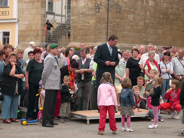 Etwas überrascht waren nicht wenige Bürger, dass die direkt am Markt liegenden Gaststätten lieber ihren Ruhetag beibehalten hatten und nicht öffneten. Aber es gab ja zum Glück einen Bierstand und auch ein Würstchenbrater hatte sich eingefunden und machten hoffentlich guten Umsatz. Aber es wird ja keiner gezwungen öffnen zu müssen. Es gibt aber auch keine Verordnung die einem Gaststättenbetreiber verbietet an einem Ruhetag mal ein bis zwei Stunden seinen Biergarten zu öffnen, zum Service seiner Kunden.
