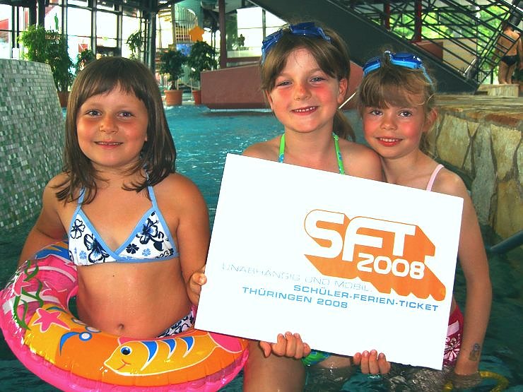 Diesen Bonus können mit Beginn der Sommerferien alle Inhaber des Schüler-Ferien-Tickets genießen. Das Ticket, das in den Thüringer Sommerferien vom 10. Juli bis zum 20. August gilt, kostet 19 Euro. Damit können Schüler bis zum 21. Lebensjahr während der Sommerferien thüringenweit das Streckennetz der Deutschen Bahn sowie die Busse und Straßenbahnen der beteiligten Nahverkehrsunternehmen nutzen.