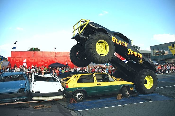Das Highlight der Show sind natürlich unsere Monstertrucks, die Groß und Klein begeistern. Black Spider ist der größte Monstertruck Europas und Red Devil ist ein gewaltiger Panzer, der den Autos den Rest gibt, Red Devil ist das einzigste Monster-Kettenfahrzeug in Deutschland. Die Show wird ca. 90 Minuten dauern. Die Veranstalter benötigen noch dringend Schrottautos. Wer sein Auto abgeben möchte, der sollte sich bitte unter 01632501716 melden.