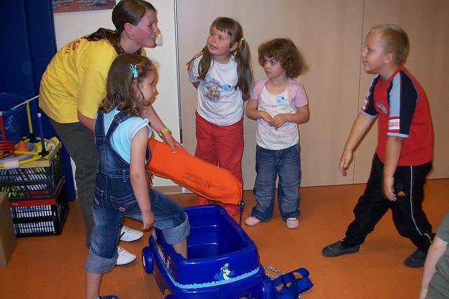 Grund war das Kindergartenprojekt, welches Josefine Buchardt und Manuela Jauer von der Deutschen Lebens-Rettungs-Gesellschaft (DLRG) Hohnstein e.V. aus Neustadt den Vorschulkindern vorstellten. Mit Musik, Rettungsgeräten, Poolnudeln, Geschichten aus dem Waldbad und Aktivitäten an der frischen Luft machten sie die angehenden Schwimmer auf Gefahren beim Baden aufmerksam. Die lebhafte Bande hatte sichtlichen Spaß beim Baderegellied, beim Ausprobieren von Rettungsball und Rettungsboje sowie beim Schwungtuchspiel im Garten.
