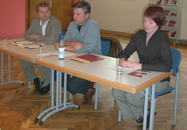Bei der Pressekonferenz Lars Tietje, Markus L. Frank und die Leiterin Öffentlichkeitsarbeit Birgit Susemihl.