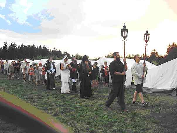Die Mitarbeiter mischen kräftig mit und lenken die gebündelten Energien der Kinder in beaufsichtigte Bahnen. Vertreten sind Jungen und Mädchen von sieben bis zwölf Jahren und über 30 Betreuer. Wie jedes Jahr beschäftigt sich das Camp auch dieses Mal mit einer ganz besonderen historischen Gestalt. Spielten in den letzten Jahren Gladys Aylward und Frere Roger Theater im großen Zelt, tritt dieses Jahr der russische Schriftsteller und Menschenfreund Tolstoi auf den Plan.