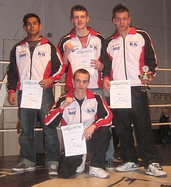 Bei den Landesmeisterschaften der Männer im Boxen in Gotha belegte Robert Lamm den 1. Platz und wurde Landesmeister. Das sagte jetzt Trainer Konrad Werner vom Nordhäuser Sportverein. Patrick Czerny und Ali Kahn wurden im B-Turnier jeweils Landesbeste. Beide Boxer wurden mit einem Pokal ausgezeichnet. Tobias Mehmecke verlor nach großem Kampf gegen den 1. Bundesliga-Boxer Alex Lais nach Punkten. Felix Lamm und Tom Langelotz konnten nicht teilnehmen, da sie mit Junioren-Nationalmannschaft in Russland und Serbien weilten.V.l.n.r.: Ali Kahn, Patrick Czerny, Tobias Mehmecke und Robert Lamm