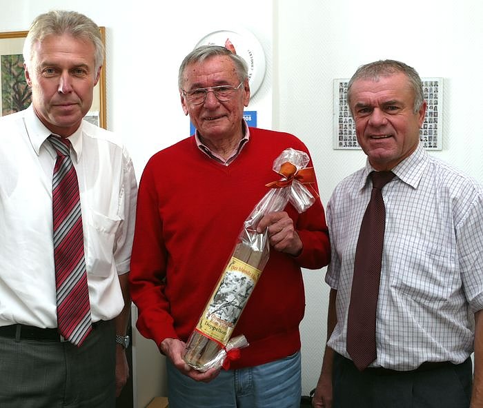 Auf seiner Heimreise nach Potsdam besuchte die Leichtathletik-Legende heute seine langjährigen Freunde Arndt Forberger und Hans-Joachim Junker. Letzterer hatte als Geschäftsführer der Nordbrand Nordhausen GmbH natürlich eine Überraschung parat. Zwei Flaschen mit edlem Nordhäuser Doppelkorn, die mit deren Etikett eine persönliche Widmung ziert.