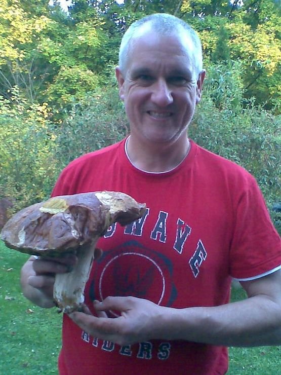 Frank Tabbat fand dieses gigantische Exemplar eines Steinpilzes in seinem Wohnort. Sein Kommentar: Beim nächsten Mal wird mit der Leiter Pilzernte gemacht.