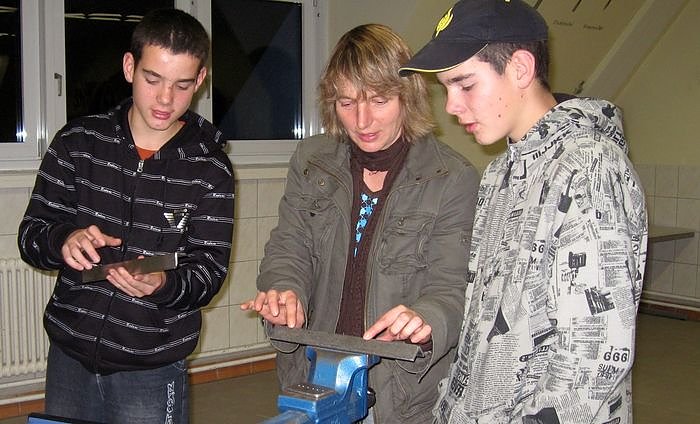 Mit großem Interesse folgten die Eltern Günter Kurzius durch die Einrichtung. Sie überzeugten sich von den guten Ausbildungsbedingungen und ließen sich von ihren Kindern über die verschiedenen Tätigkeiten in den Bereichen Metall, Holzbau und Trockenbau informieren. Mit Stolz zeigten sie ihre Werkstücke. Die Eltern erhielten einen Überblick über weitere Praktika im Rahmen der Berufsvorbereitung, sie lernten den Berufswahlpass kennen und informierten sich über die Ergebnisse des Kompetenztests ihrer Kinder.