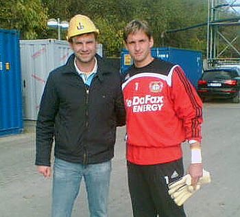 Der Job in Leverkusen bringt für Mario Böhnhardt neben den alltäglichen Herausforderungen ab und zu auch mal Abwechslung der besonderen Art. So hatte er erst kürzlich einen Plausch mit der Nummer 1 im Tor der deutschen Fußball-Nationalmannschaft, René Adler. Sein Kommentar dazu: Hier stehen die Nummer 1 im Tor und die Nummer 1 der Fertigteilmontage!