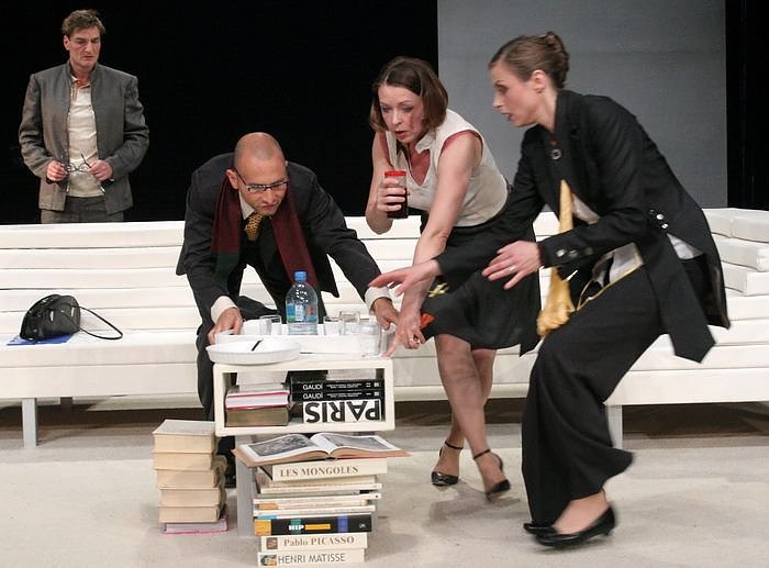 Autor: nnz/knAusschnitt aus Der Gott des Gemetzels: Johannes Arpe (Michael Houillé), Marcus Ostberg (Alain Reille), Charlotte Ronas (Annette Reille), Alice Flotron (Veronique Houillé) – v. l