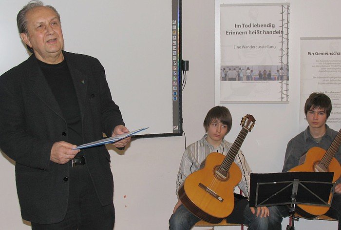 Autor: nnzStadtratsmitglied und ehrenamtlicher Beigeordneter Dr. Manfred Schröter (CDU) eröffnete heute Nachmittag im Beisein von Zeitzeugen des e.V. die Ausstellung Im Tod lebendig - Erinnern heißt Handeln. Die Ausstellung zeigt Lebensbilder von Häftlingen des ehemaligen KZ Mauthausen in der Aula der Petersbergschule und ist bis zum 6. März zu sehen. Offen ist die Ausstellung von Montag bis Freitag von 9 bis 16 Uhr, sowie am 21. Februar, dem Tag der offenen Tür der Petersbergschule, von 10 bis 13 Uhr.